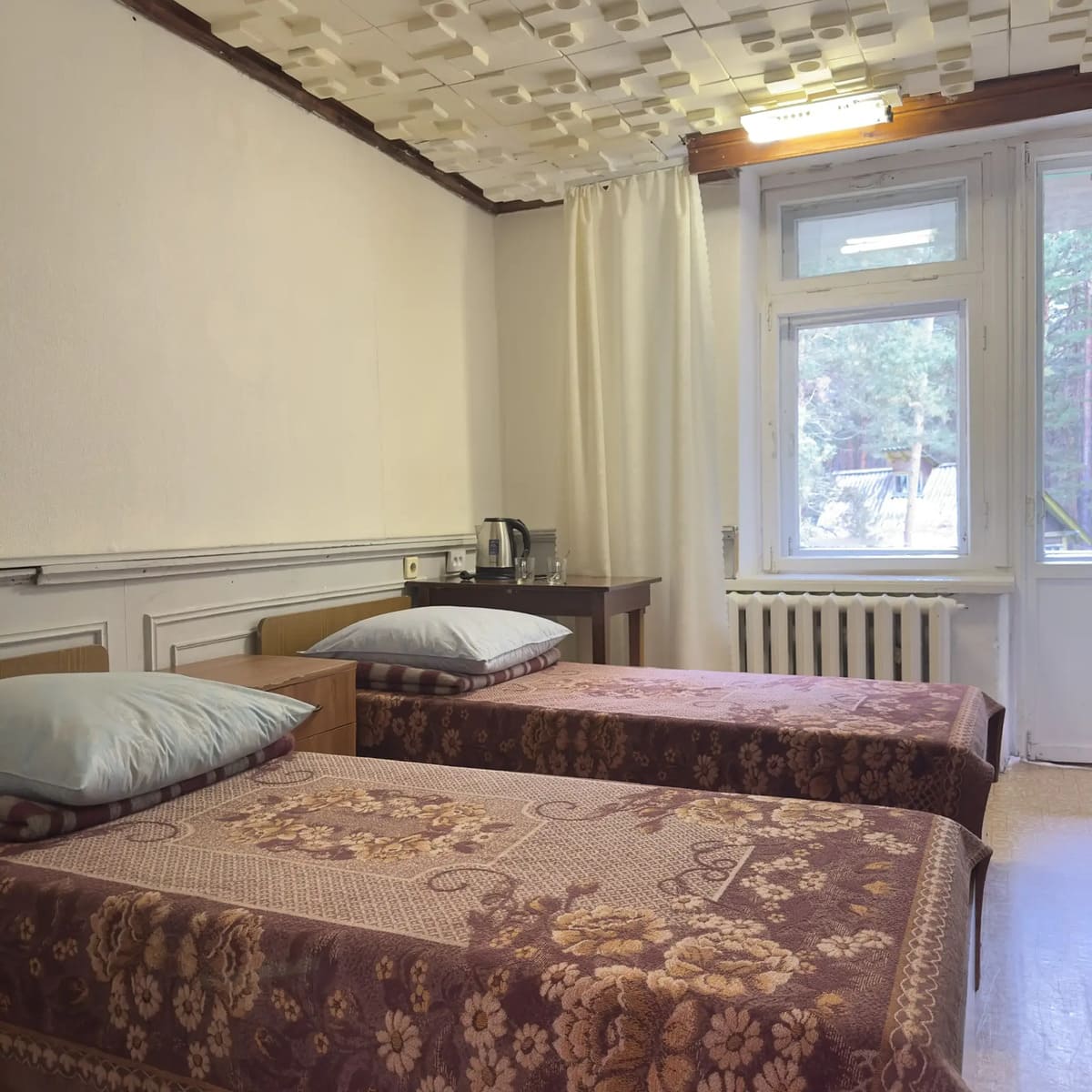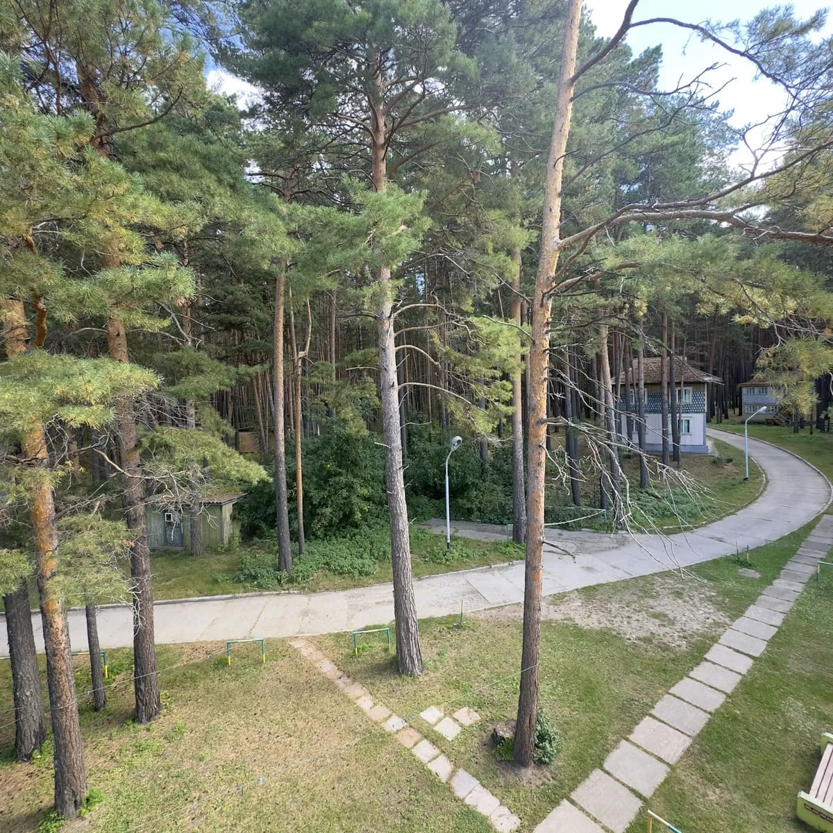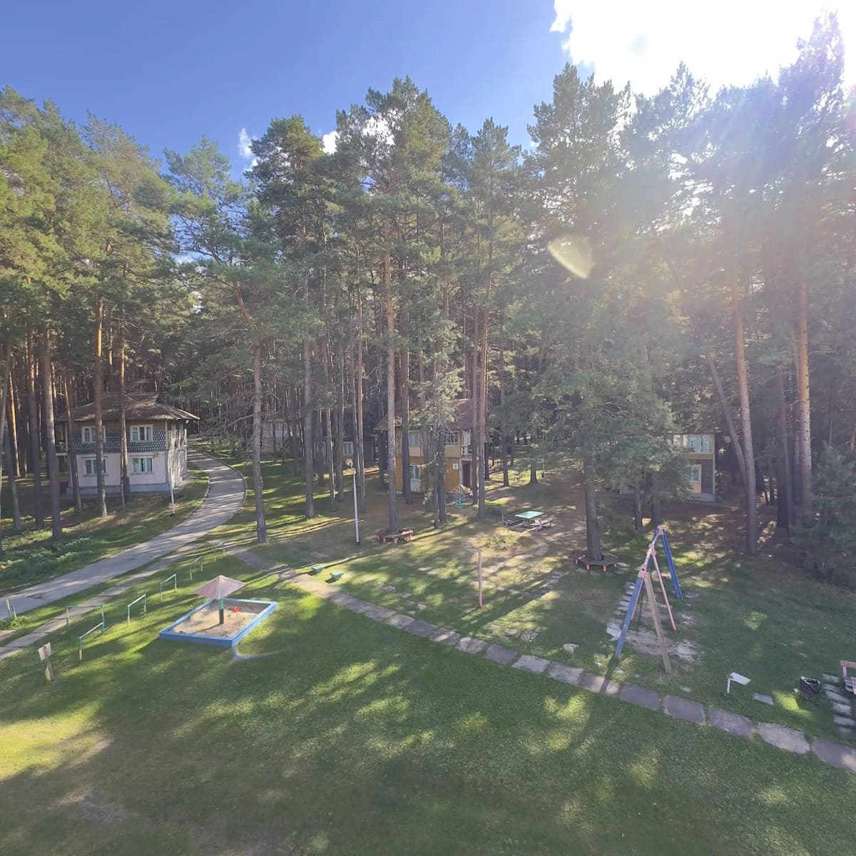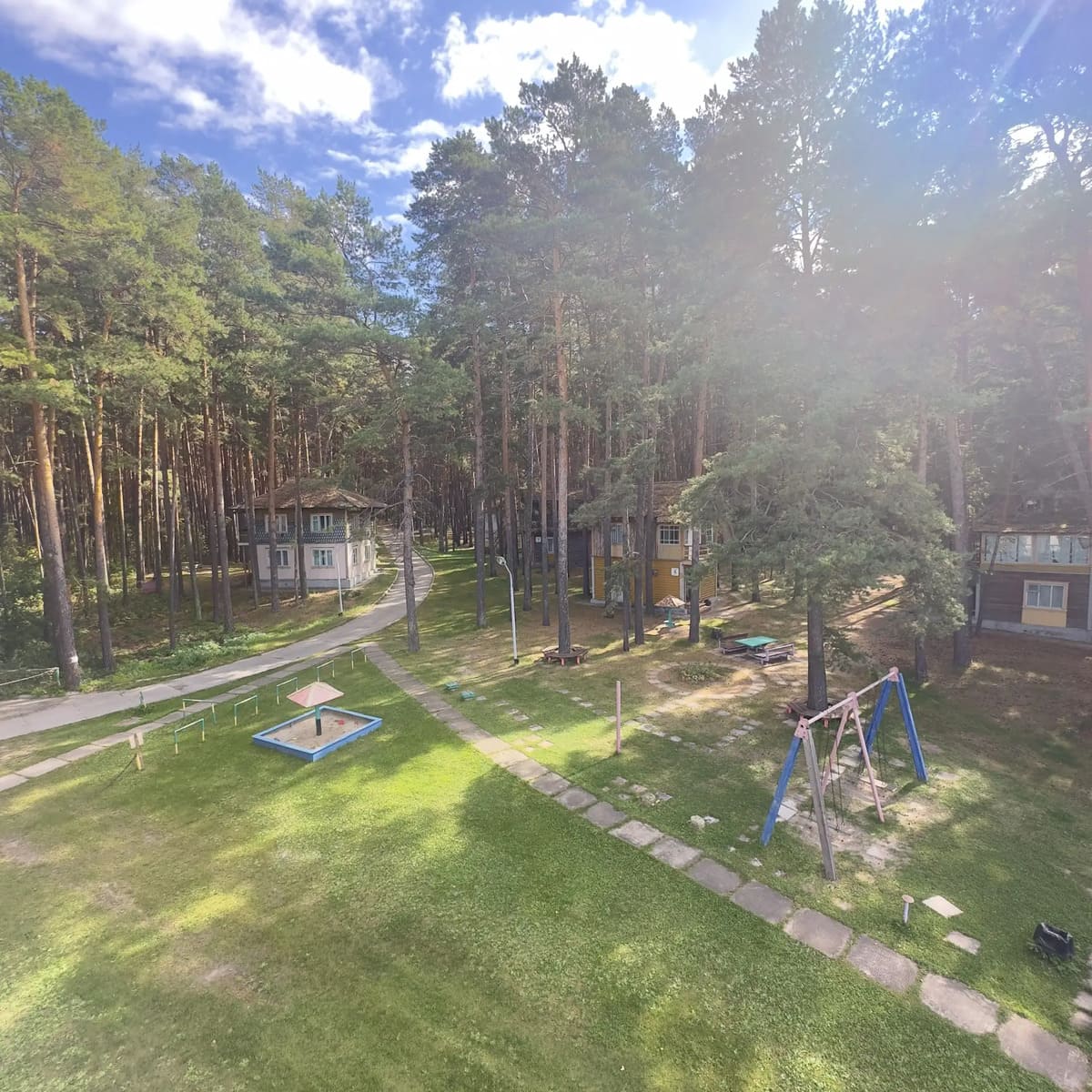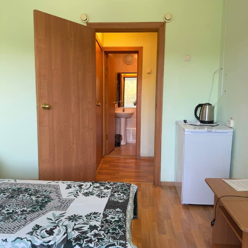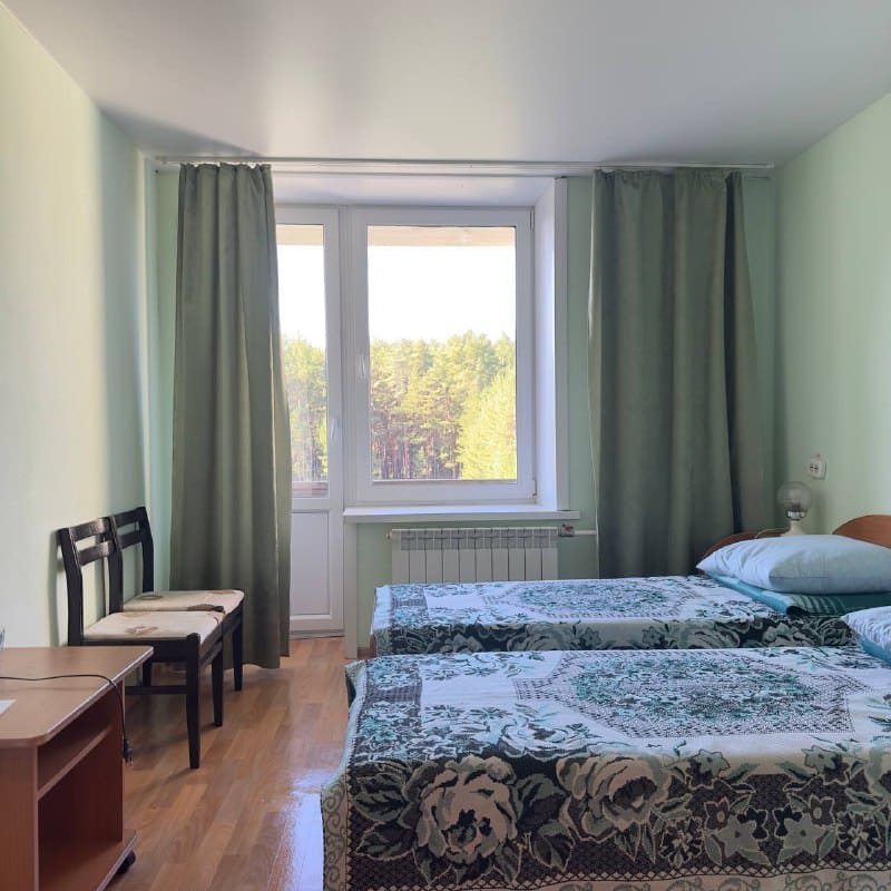 Спальный корпус — трехэтажное кирпичное здание общей вместимостью 68 мест, 2-х, 4-х местные номера с удобствами непосредственно в номере. Номера 1-й и 2-й категории.
