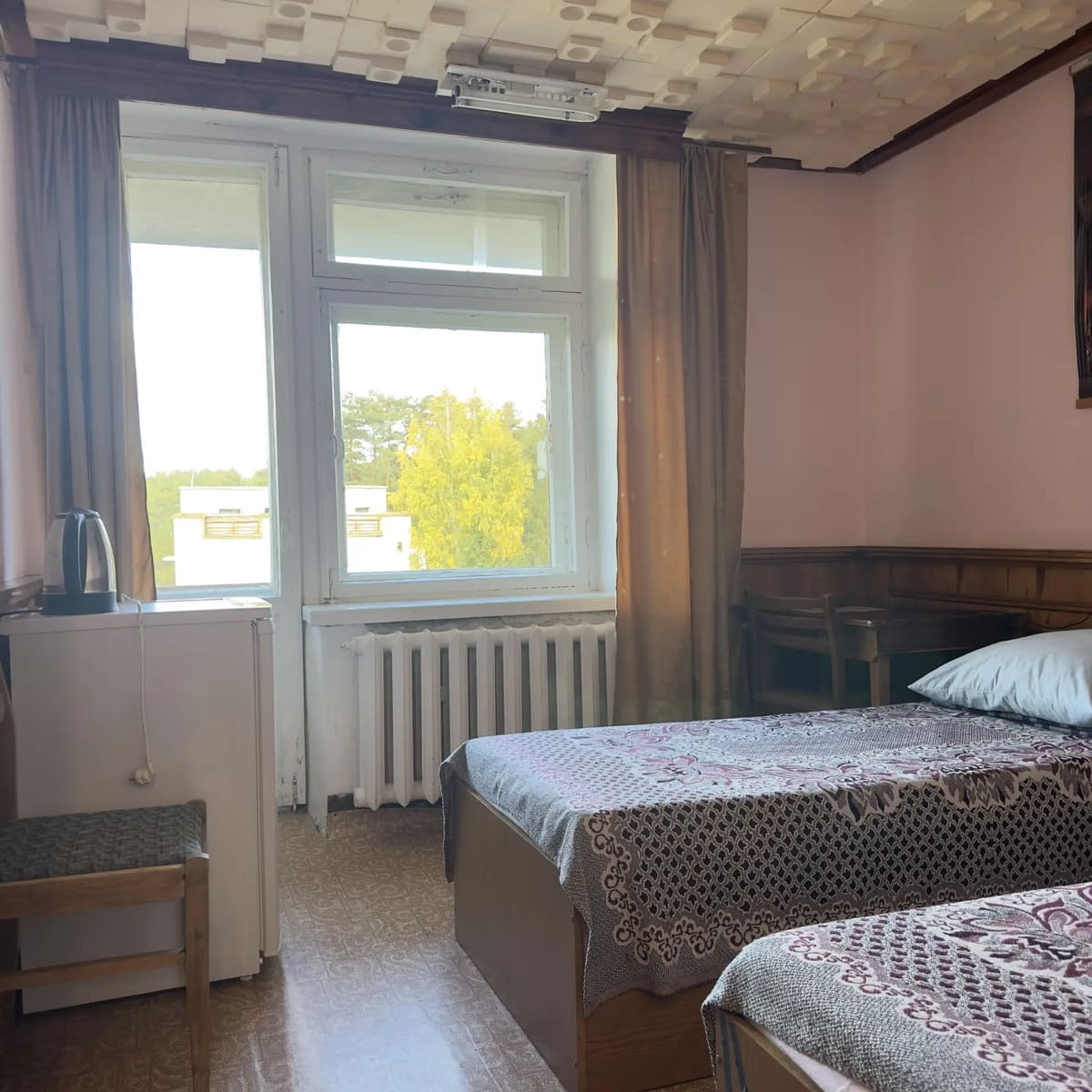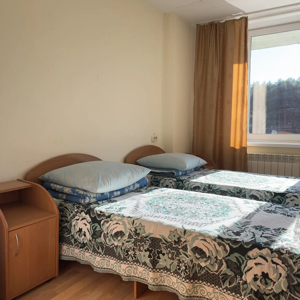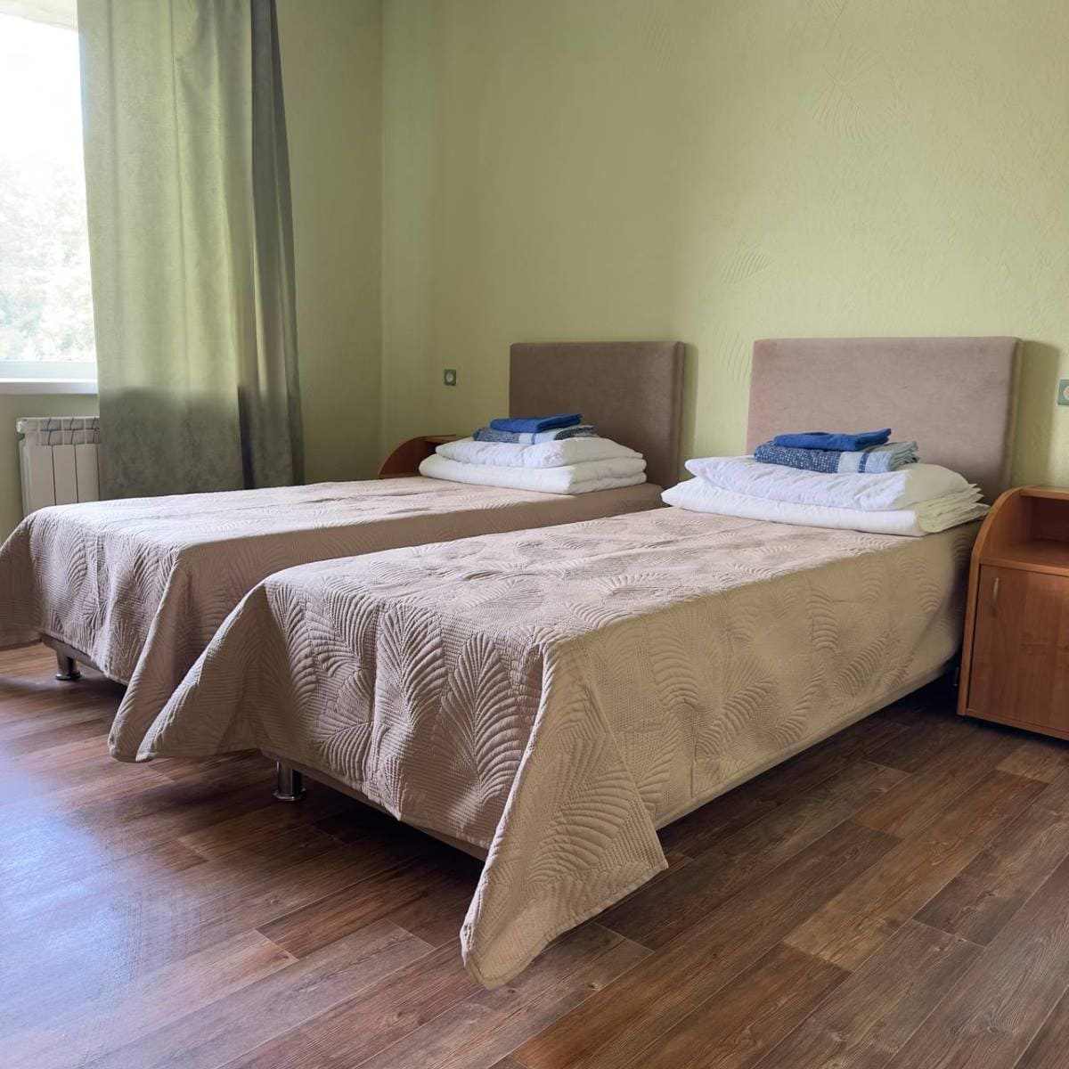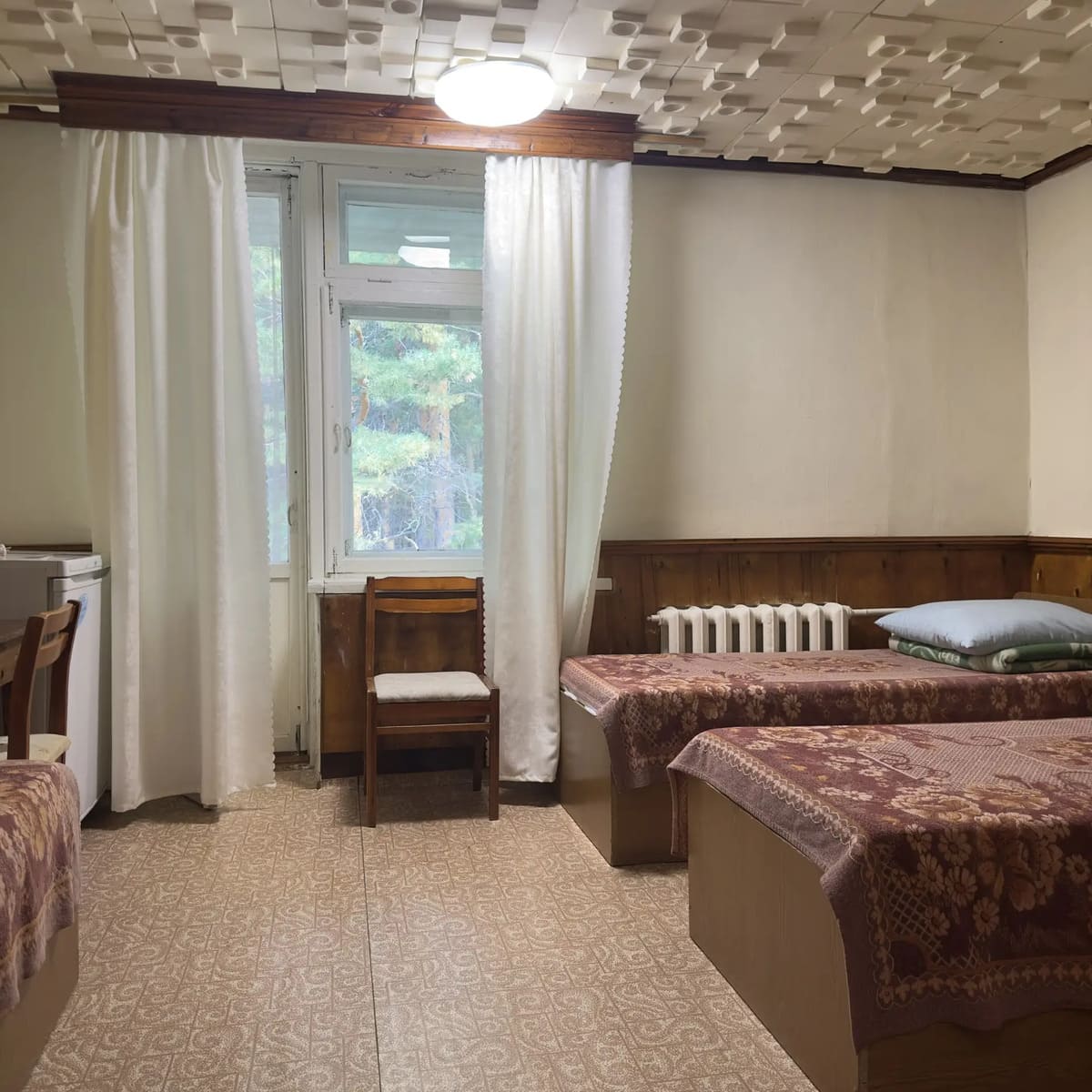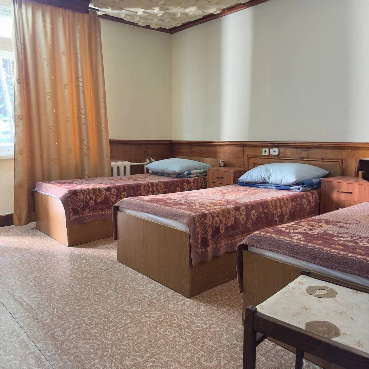 Спальный корпус — трехэтажное кирпичное здание общей вместимостью 68 мест, 2-х, 4-х местные номера с удобствами непосредственно в номере. Номера 1-й и 2-й категории.