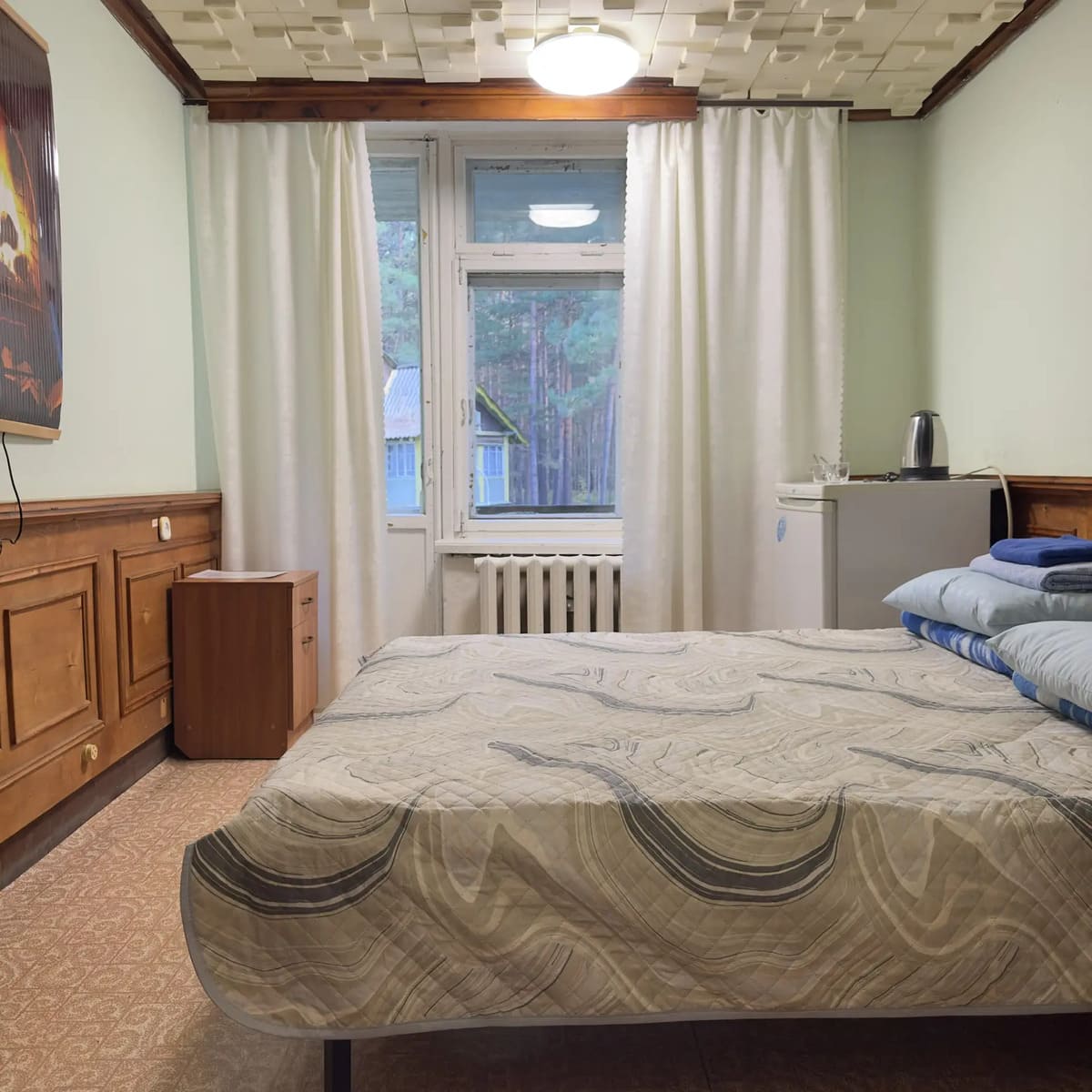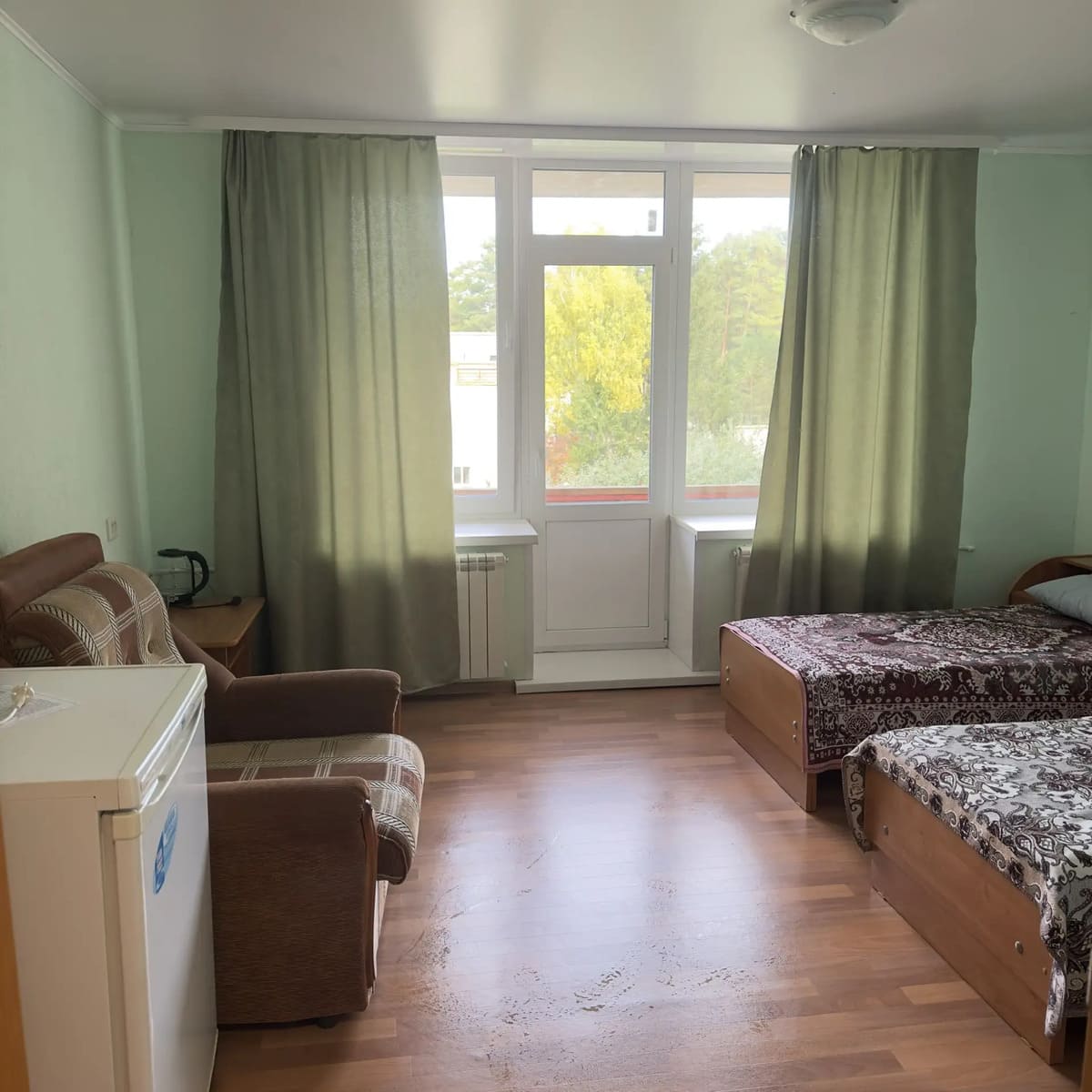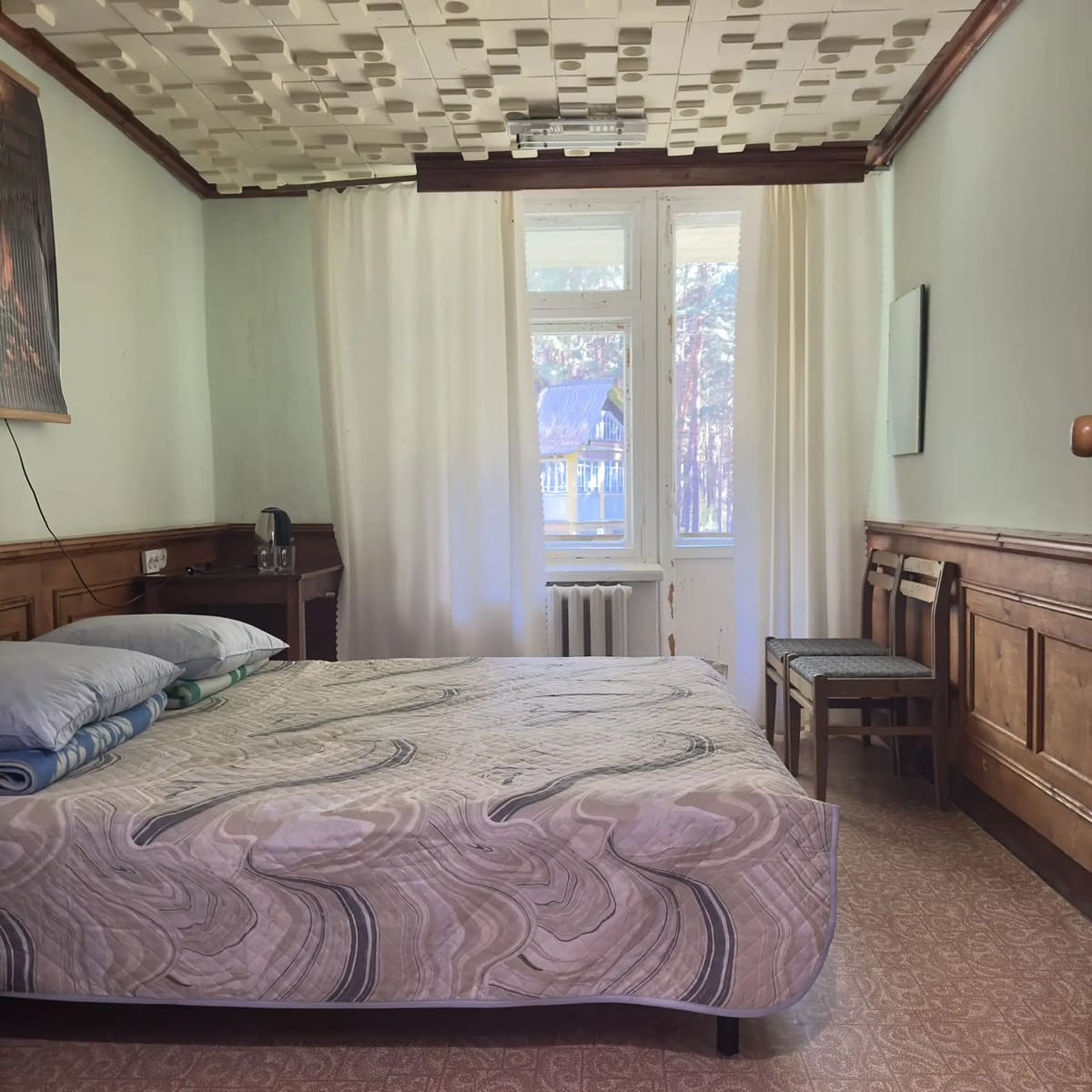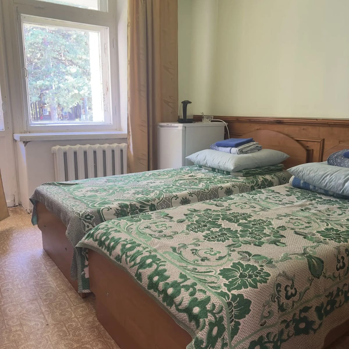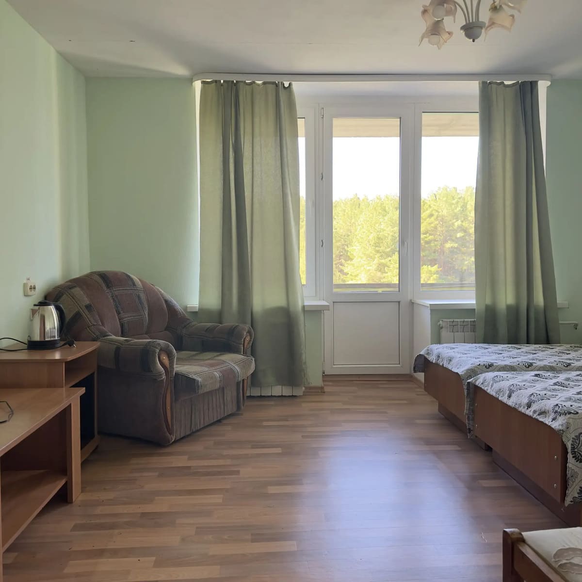 Спальный корпус — трехэтажное кирпичное здание общей вместимостью 68 мест, 2-х, 4-х местные номера с удобствами непосредственно в номере. Номера 1-й и 2-й категории.