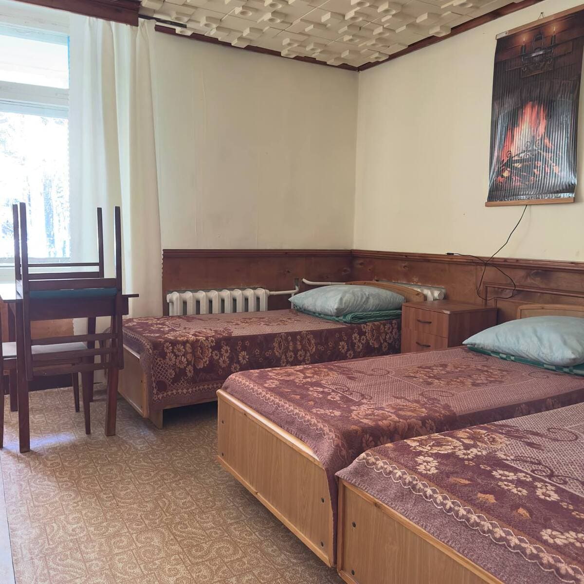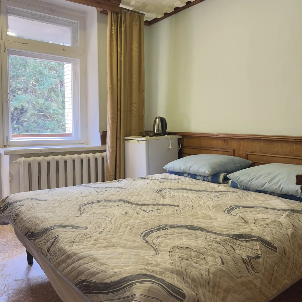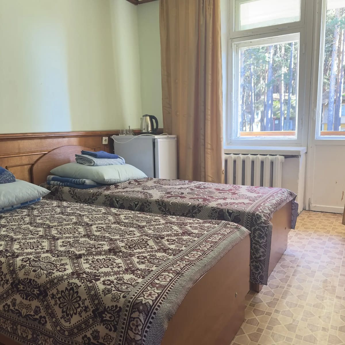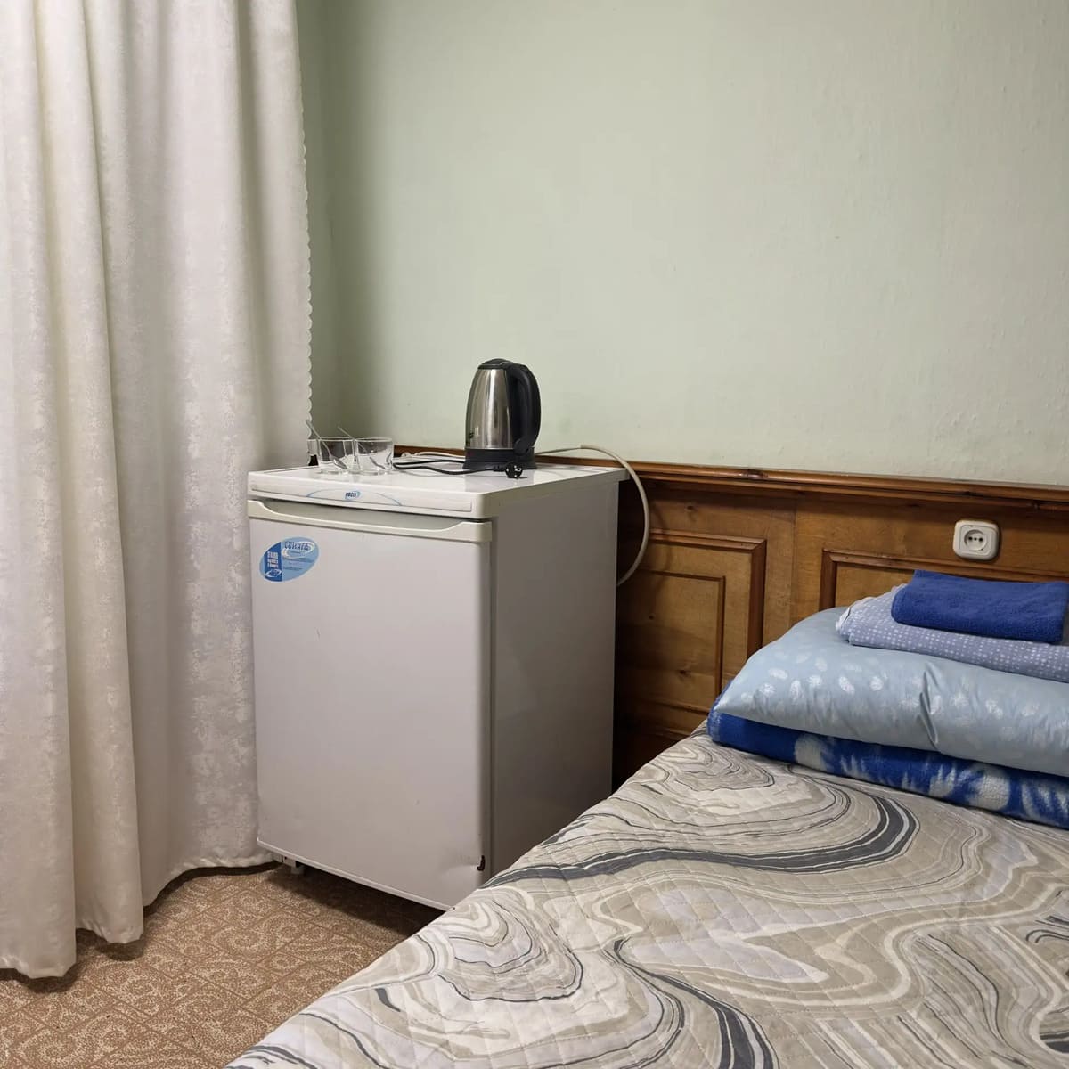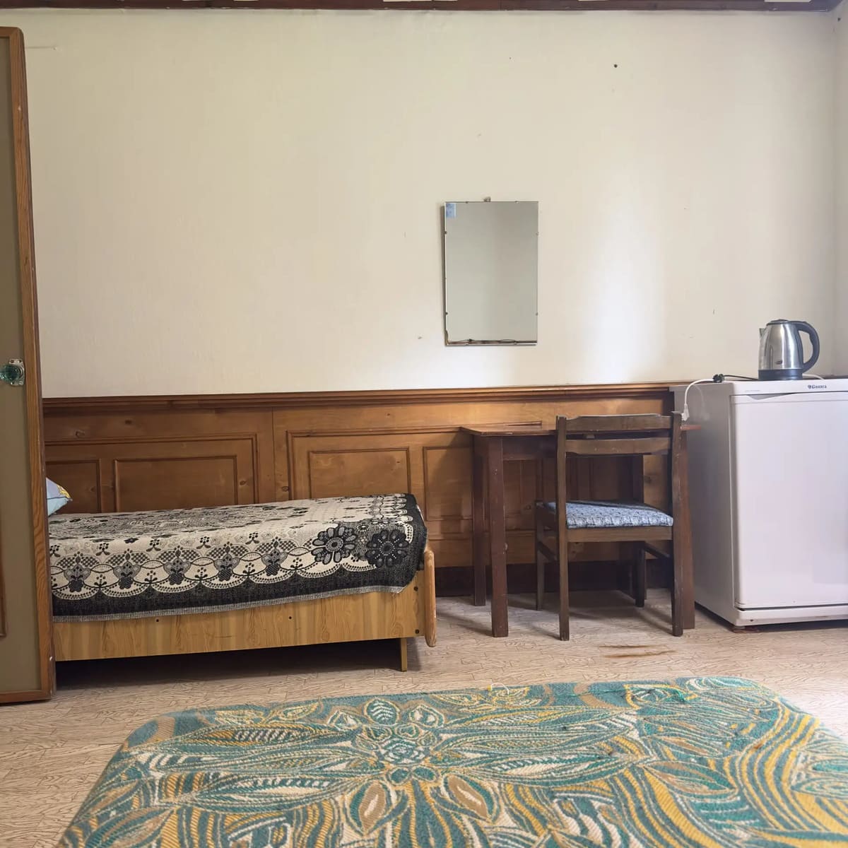 Спальный корпус — трехэтажное кирпичное здание общей вместимостью 68 мест, 2-х, 4-х местные номера с удобствами непосредственно в номере. Номера 1-й и 2-й категории.