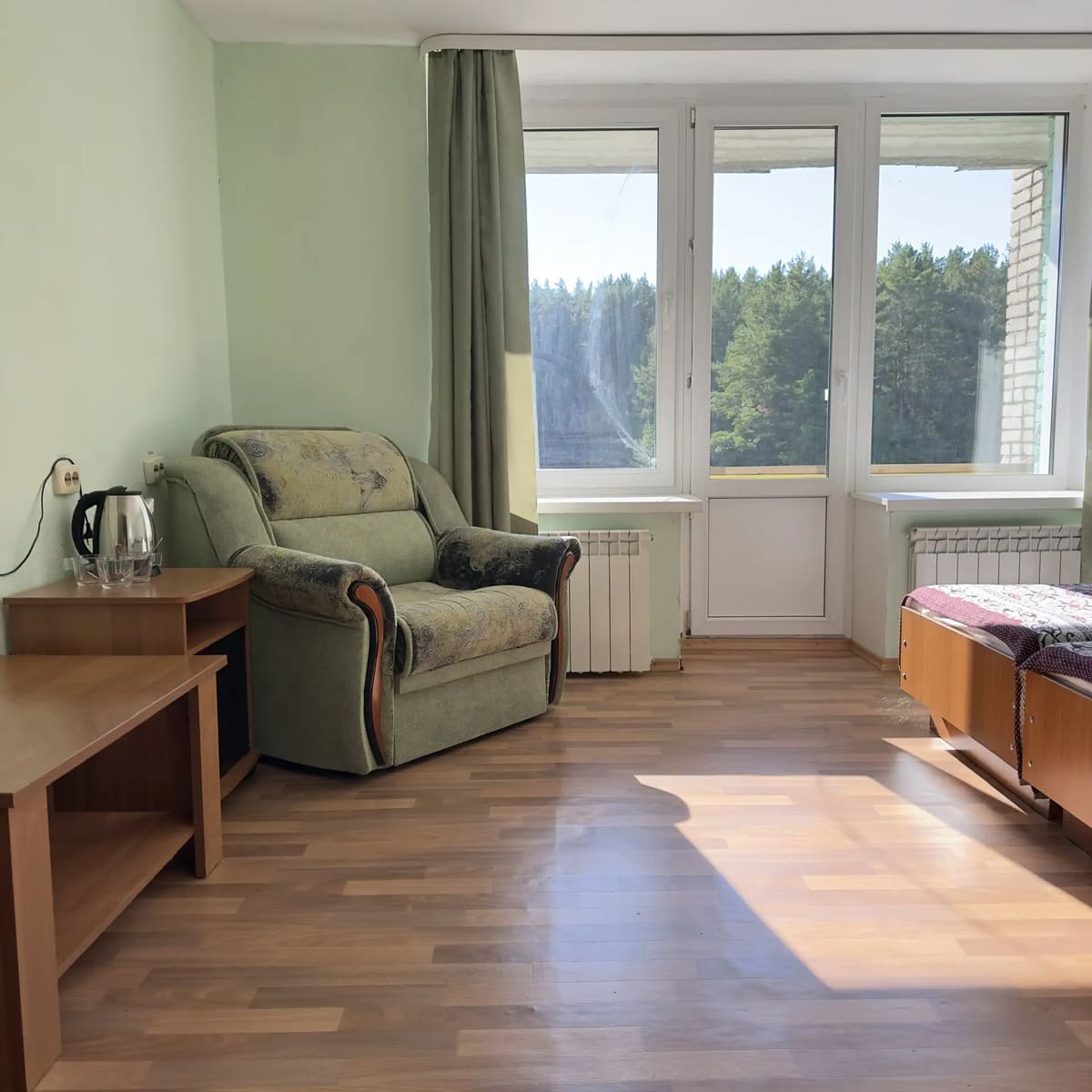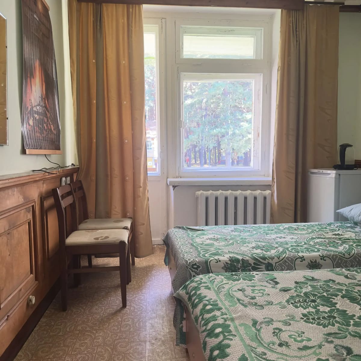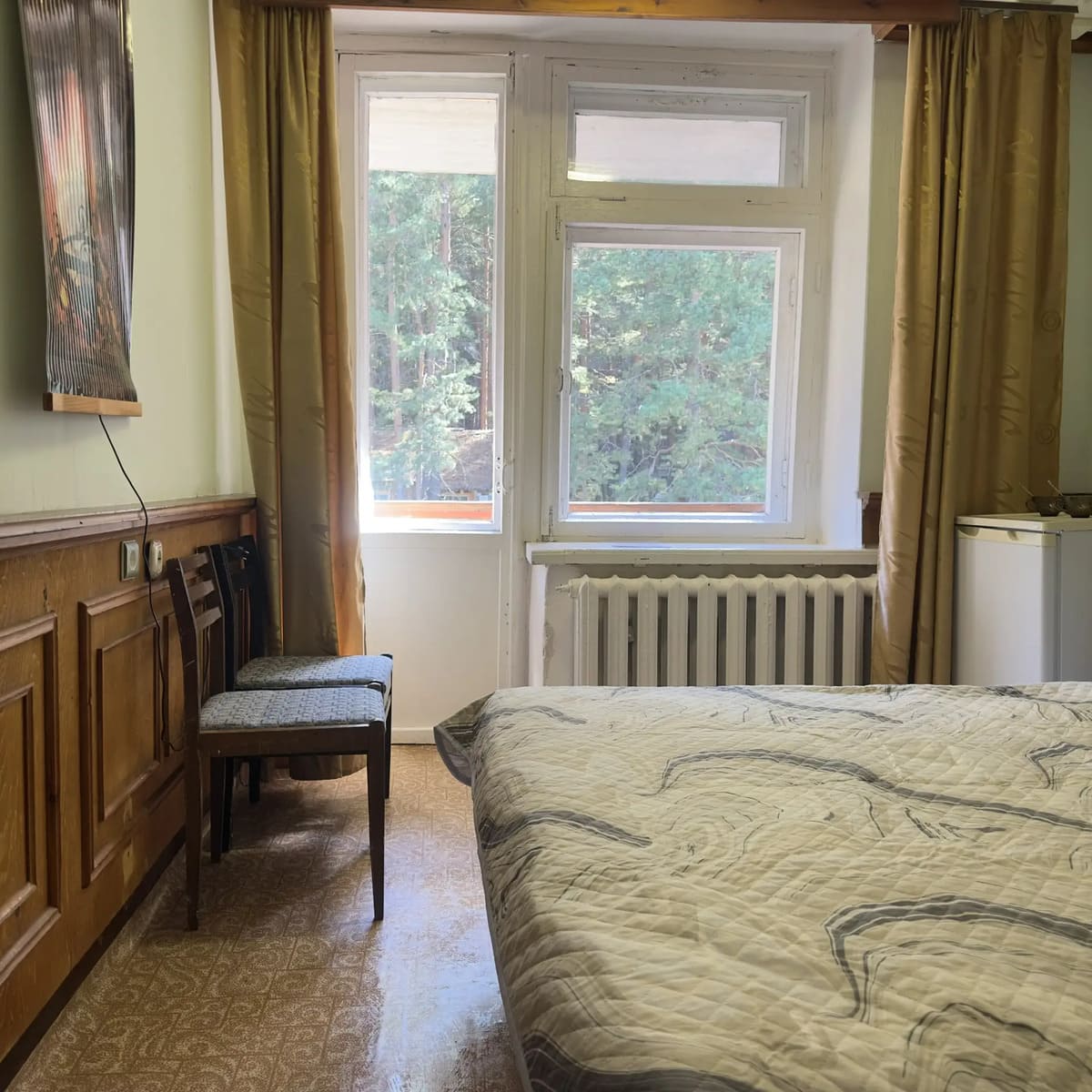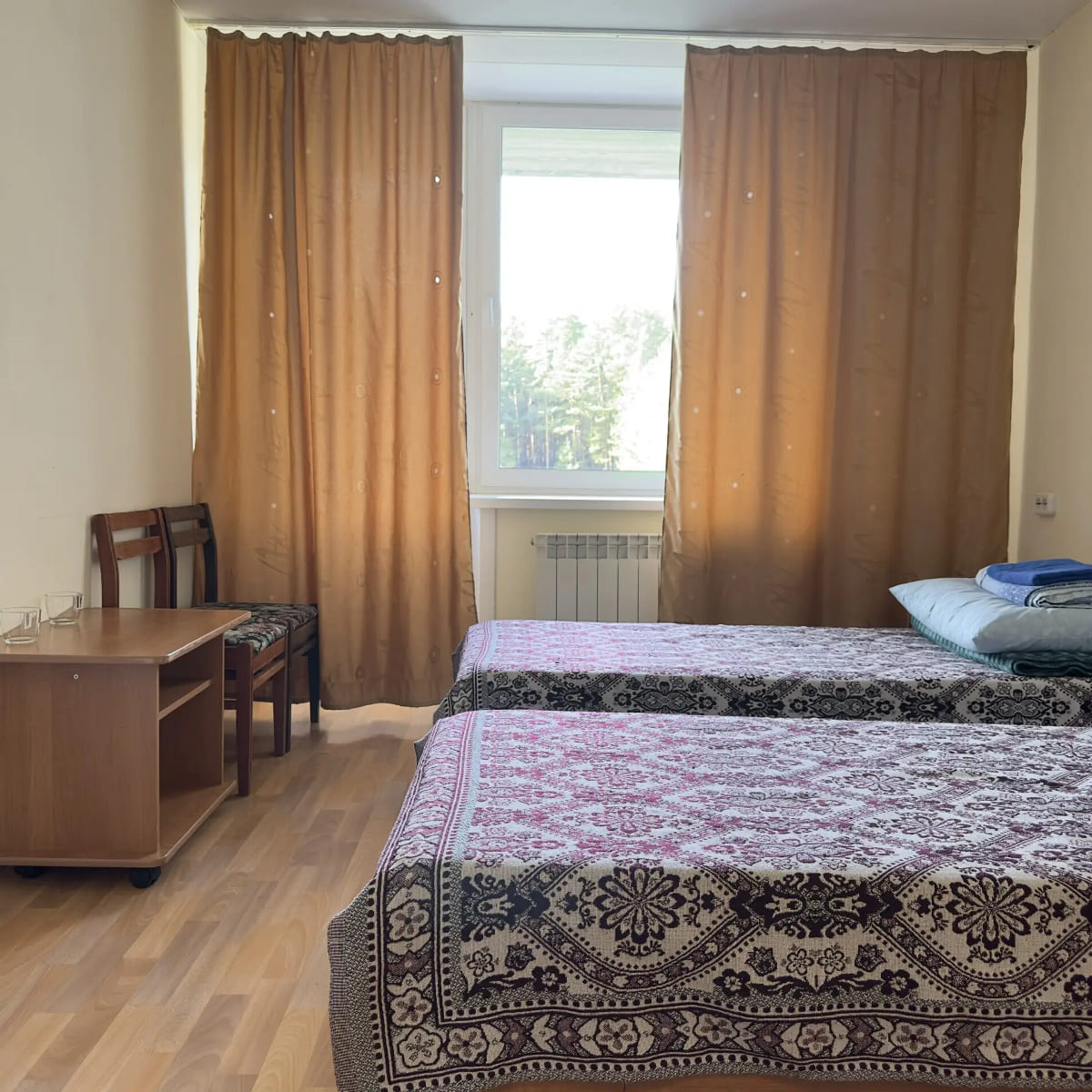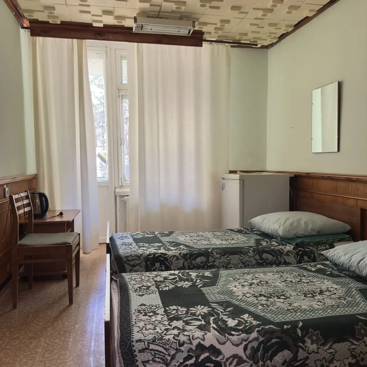 Спальный корпус — трехэтажное кирпичное здание общей вместимостью 68 мест, 2-х, 4-х местные номера с удобствами непосредственно в номере. Номера 1-й и 2-й категории.