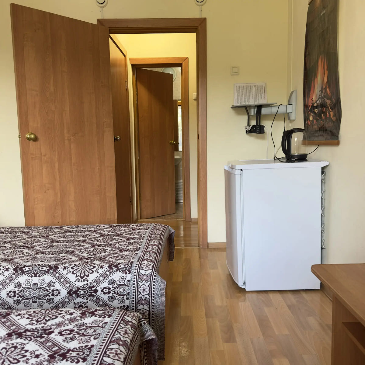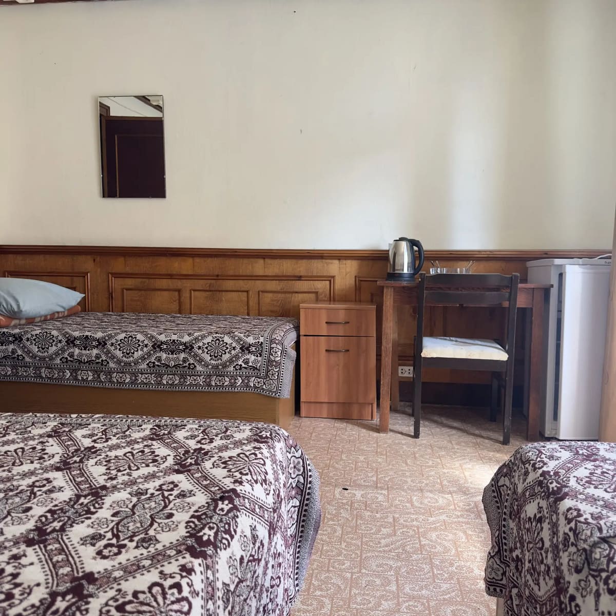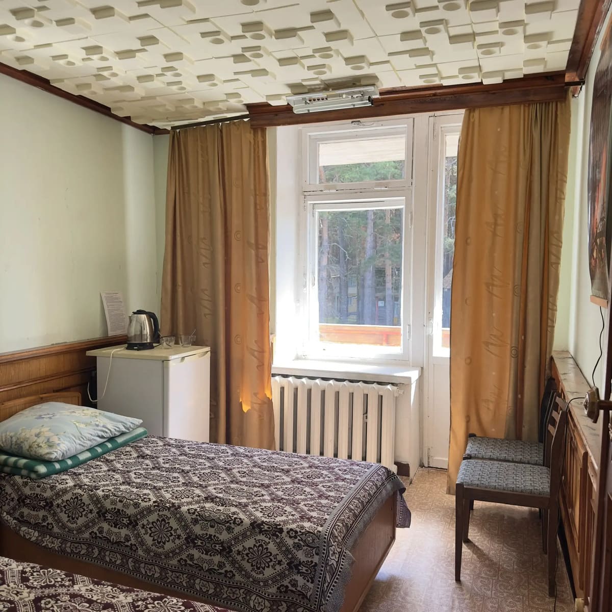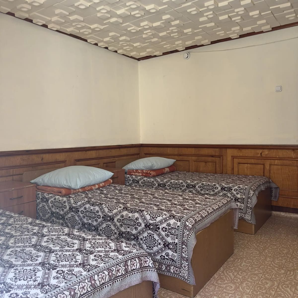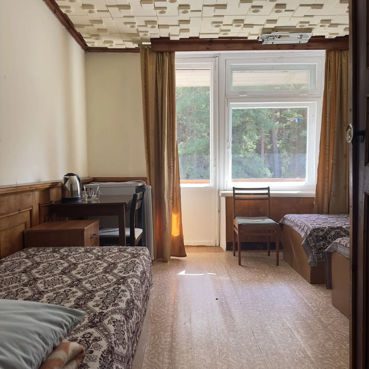 Спальный корпус — трехэтажное кирпичное здание общей вместимостью 68 мест, 2-х, 4-х местные номера с удобствами непосредственно в номере. Номера 1-й и 2-й категории.